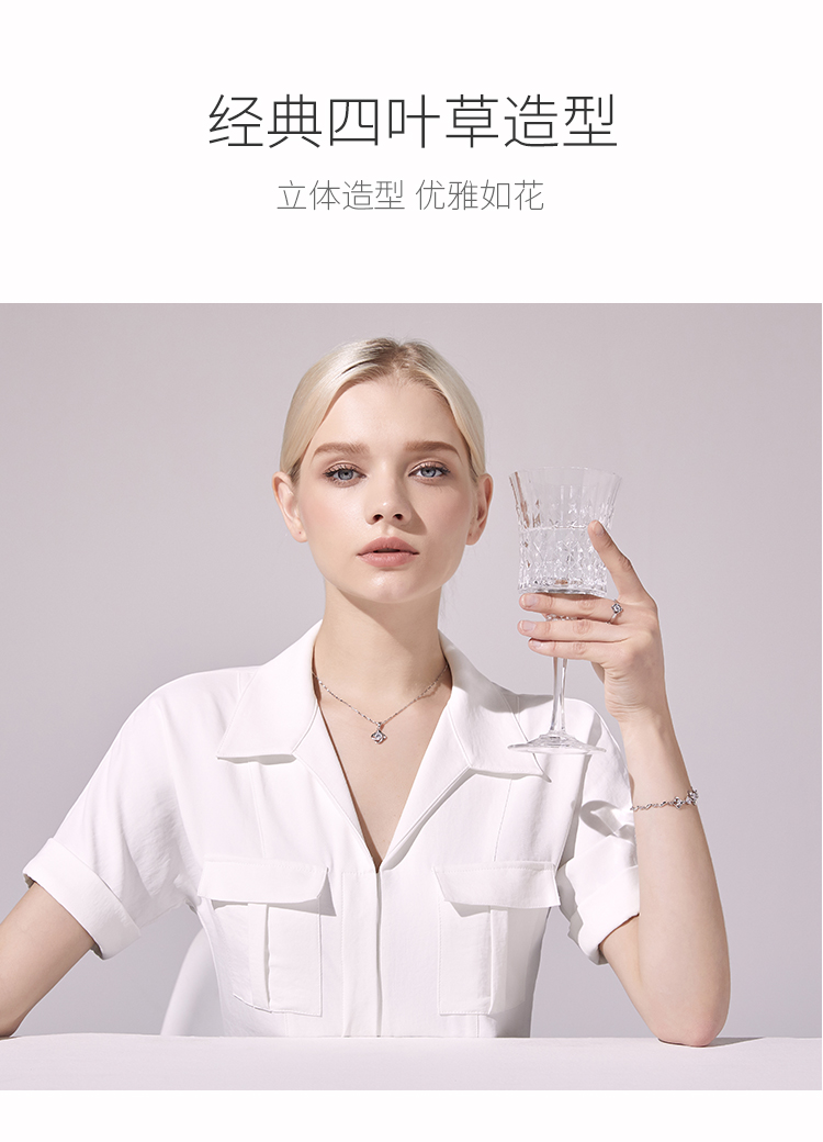 商品名称:情侣戒指四叶草女999足银生日礼物女素圈可调节