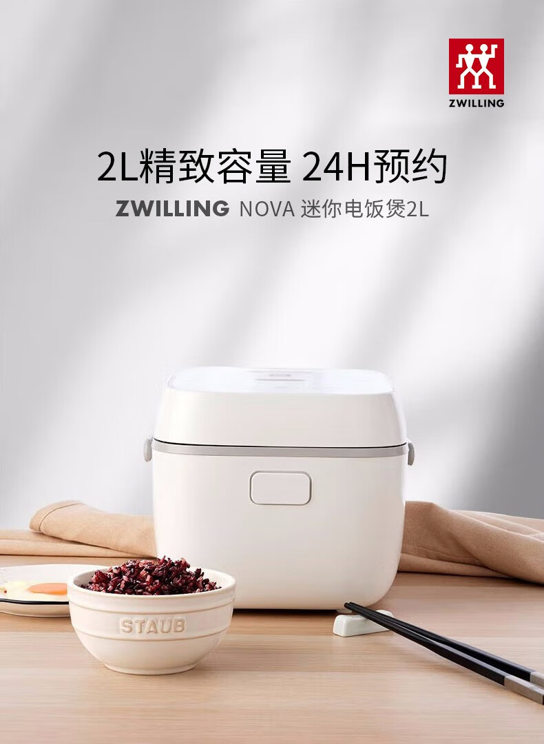 双立人(ZWILLING)电饭煲电饭锅迷你多功能智能预约家用小家电煮饭锅2L蒸饭锅2-3人 白色-8大模式