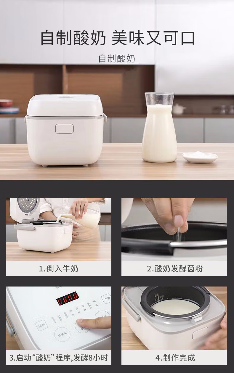 商品名称:双立人(ZWILLING)电饭煲电饭锅迷你多功能智能预约家用小家电煮饭锅2L蒸饭锅2-3人 白色-8大模式