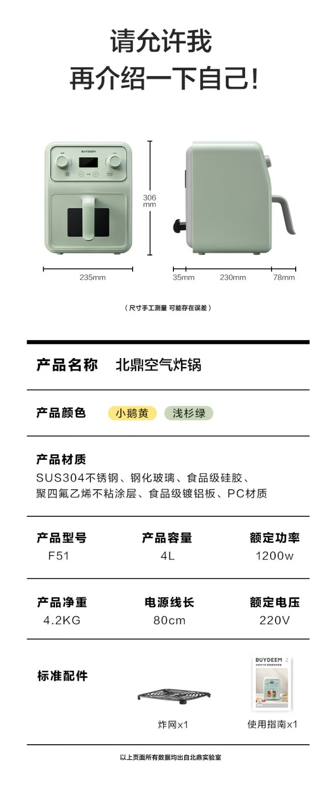 商品名称: 北鼎(Buydeem)空气炸锅 4L大容量