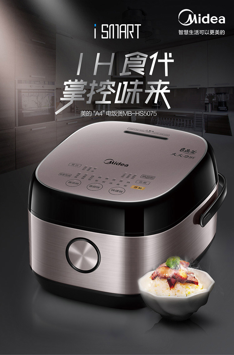 商品名称:美的电饭煲电饭锅5L大容量IH电磁加热智能24小时预约触摸操控一键香浓粥 【5L立体IH】恒匀火快煮