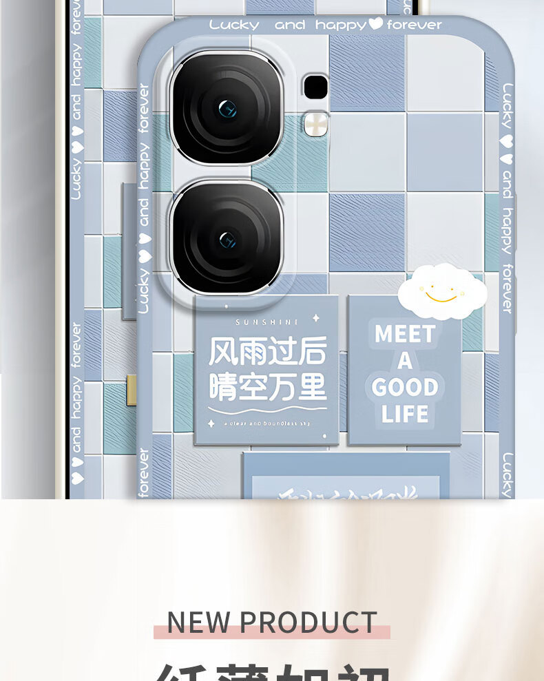 商品名称:雅千图 适用iQOONeo9手机壳新款高颜值格纹Neo9Pro硅胶全包防摔保护套网红小清新ins女款 古董白-生活晴朗液+膜 iQOONeo9