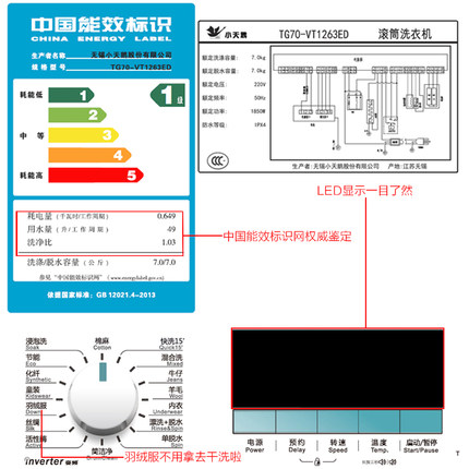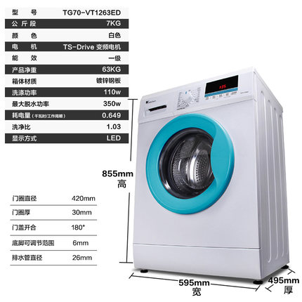 商品名称:Littleswan/小天鹅 TG70-VT1263ED 7kg/公斤变频滚筒全自动洗衣机