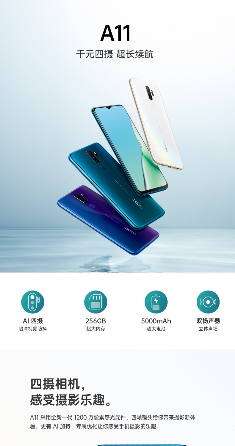 商品名称:OPPO A11 超清AI四摄大内存长续航全面屏学生老人智能手机