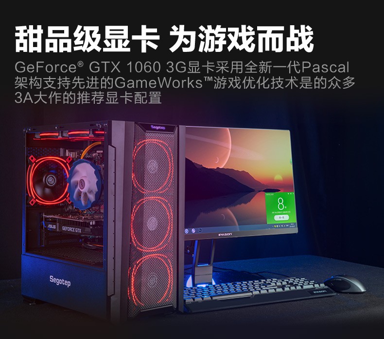 攀升 i3 9100F四核/GTX1060 3G独显/8G内存吃鸡游戏台式电脑DIY组装机