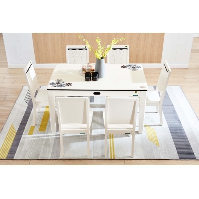全友家居 餐桌椅套装组合 餐厅可折叠饭桌 钢化玻璃台面餐桌 实木框架桌子椅子120763 餐桌+餐椅A*2+餐椅B*2