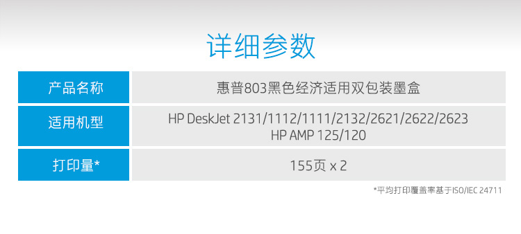商品名称:惠普(HP)3YP94AA 803黑色经济适用双包装 (适用于HP Deskjet 2621 2622 1112/2132/1111/2131)
