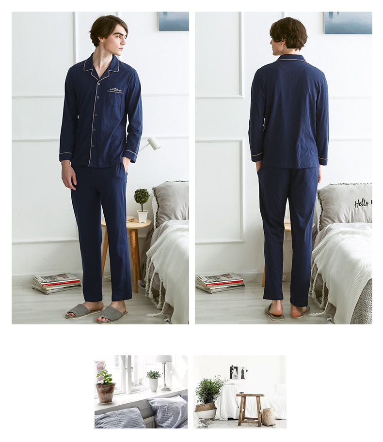 芬腾 内衣睡衣男英伦纯色翻领开衫家居服套装