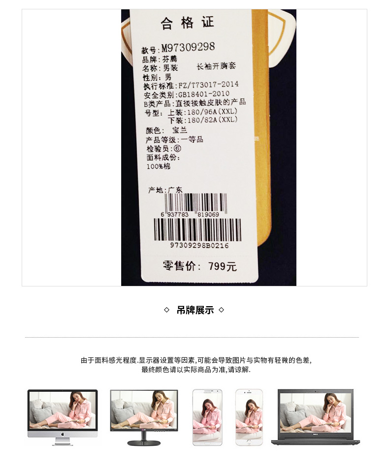 商品名称:芬腾 内衣睡衣男英伦纯色翻领开衫家居服套装