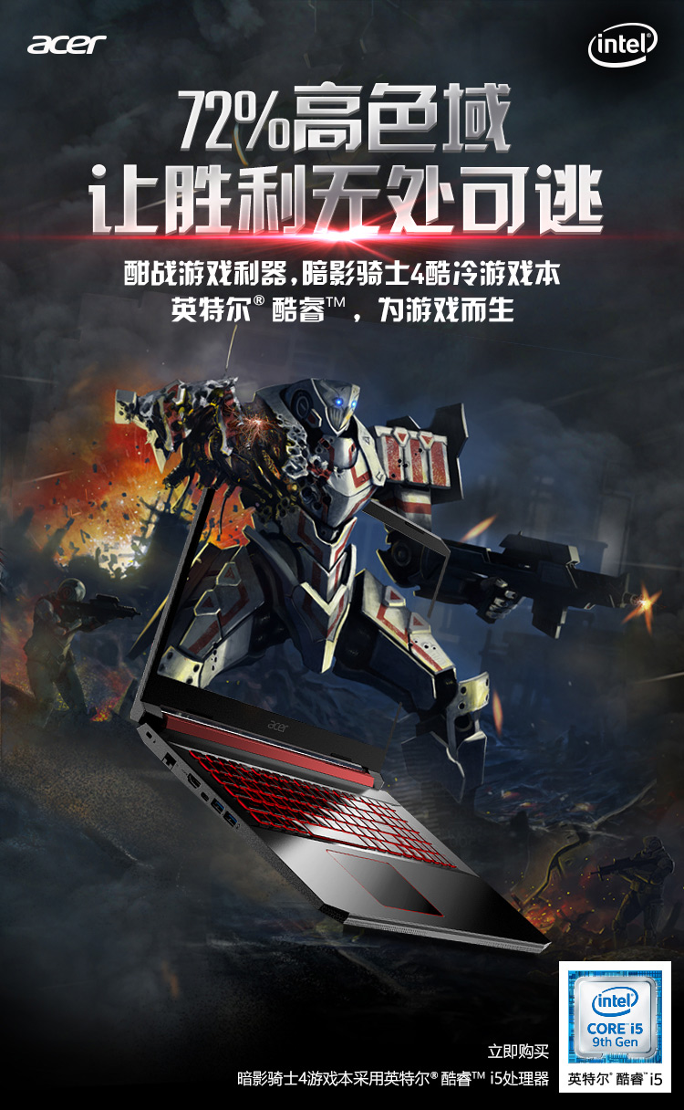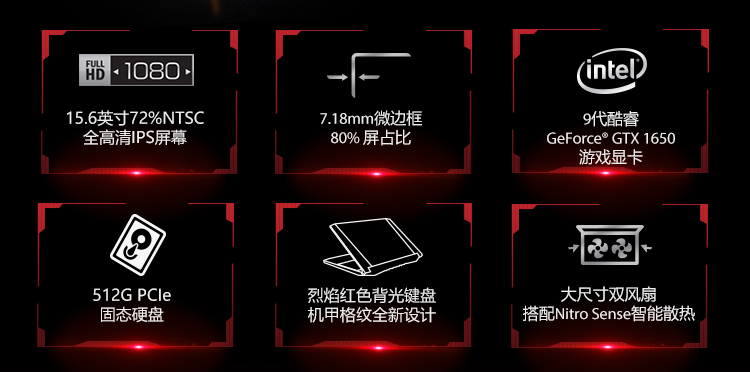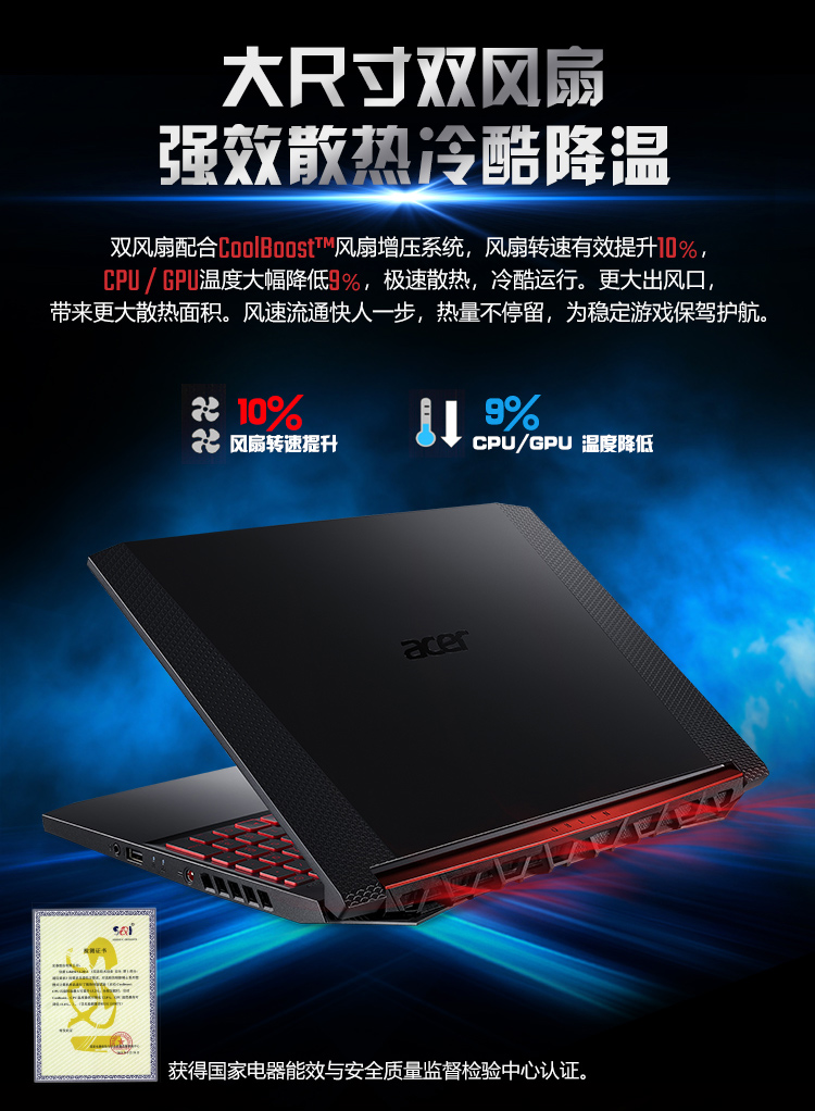 商品名称:宏碁(Acer)暗影骑士4 15.6英寸 高色域屏 游戏本 笔记本电脑 (I5-9300H标压 8G 512GPCIe GTX1650 4G独显)