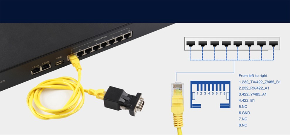 8口工业级多串口服务器机架式232/485/422转以太网有人物联网N668