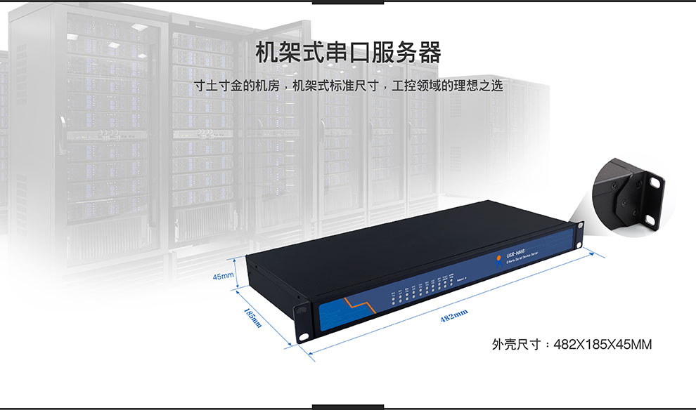 商品名称:8口工业级多串口服务器机架式232/485/422转以太网有人物联网N668
