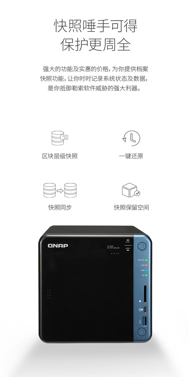 威联通(QNAP)TS-453B 8G内存 四盘位网络存储器NAS 四核处理器 (无内置硬盘)
