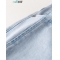 茵曼夏装弹性棉牛仔分割毛边显瘦七分喇叭裤女牛仔裤【1872333403】 水蓝色