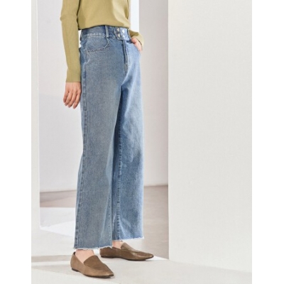 商品名称:茵曼2020春装新款文艺纯棉高腰宽松水洗直筒显瘦牛仔长裤女【F1801510】 牛仔蓝