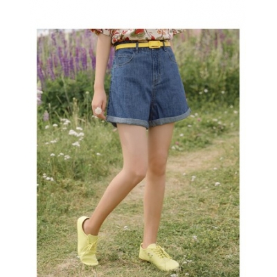 茵曼夏装新款高腰韩版潮流休闲学生宽松百搭显瘦牛仔短裤女【1892169885】 牛仔蓝