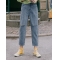 茵曼2020春装新款纯棉文艺复古破洞直筒宽松时尚个性牛仔裤女【1801010】 牛仔蓝