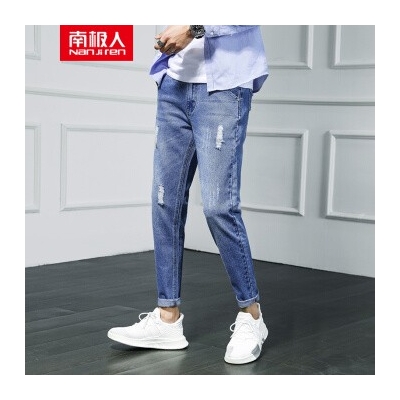 南极人(Nanjiren)男士时尚牛仔裤韩版修身九分小脚乞丐裤子