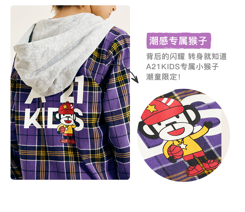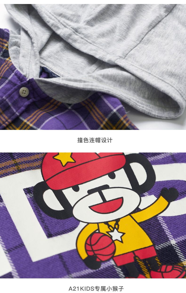 以纯线上品牌A21秋季 新款童装男童衬衫秋长袖儿童纯棉格子长袖衬衫R493310003 紫色
