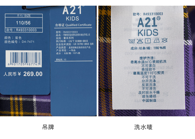 商品名称:以纯线上品牌A21秋季 新款童装男童衬衫秋长袖儿童纯棉格子长袖衬衫R493310003 紫色