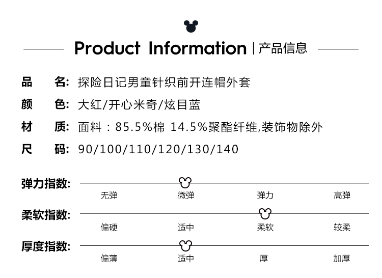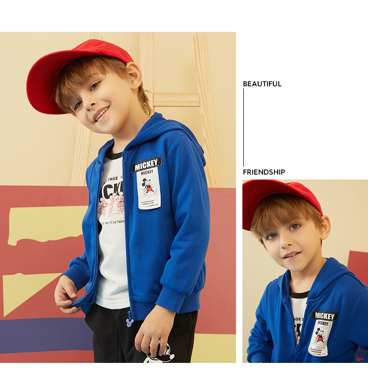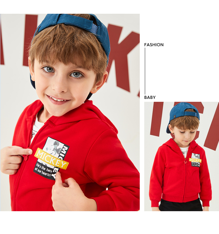 商品名称:迪士尼童装2020春季新款男童前开拉链衫宝宝时尚连帽外套儿童上衣