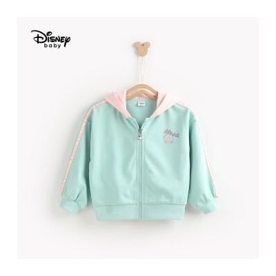 迪士尼童装2020春季新款儿童女可爱甜美上衣拉链衫女童连帽外套 浅草绿