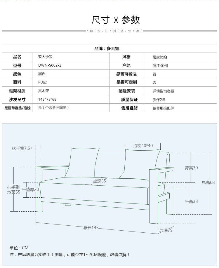 商品名称:多瓦娜(DOWANA)沙发 现代小户型实木皮沙发 简约新中式办公沙发DWN-S002-2黑色 双人位