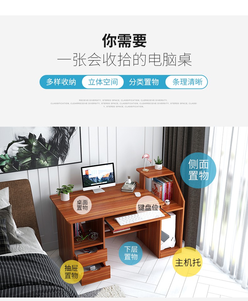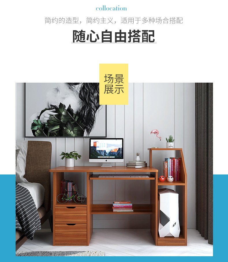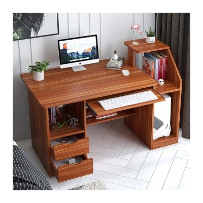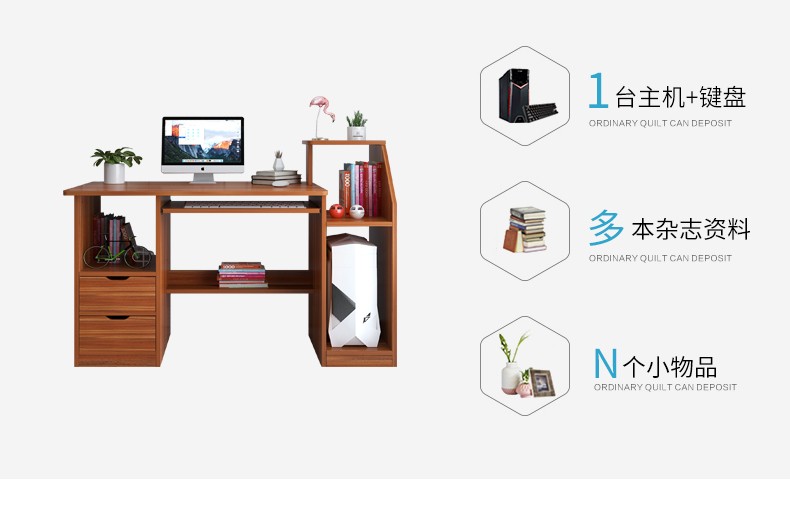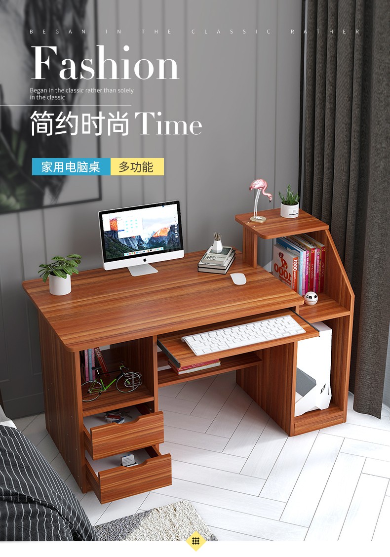 商品名称:亿家达电脑桌台式笔记本家用简易办公桌带书架写字台简约书桌子 古檀木色两抽
