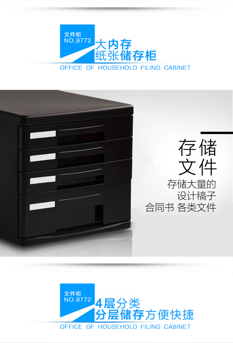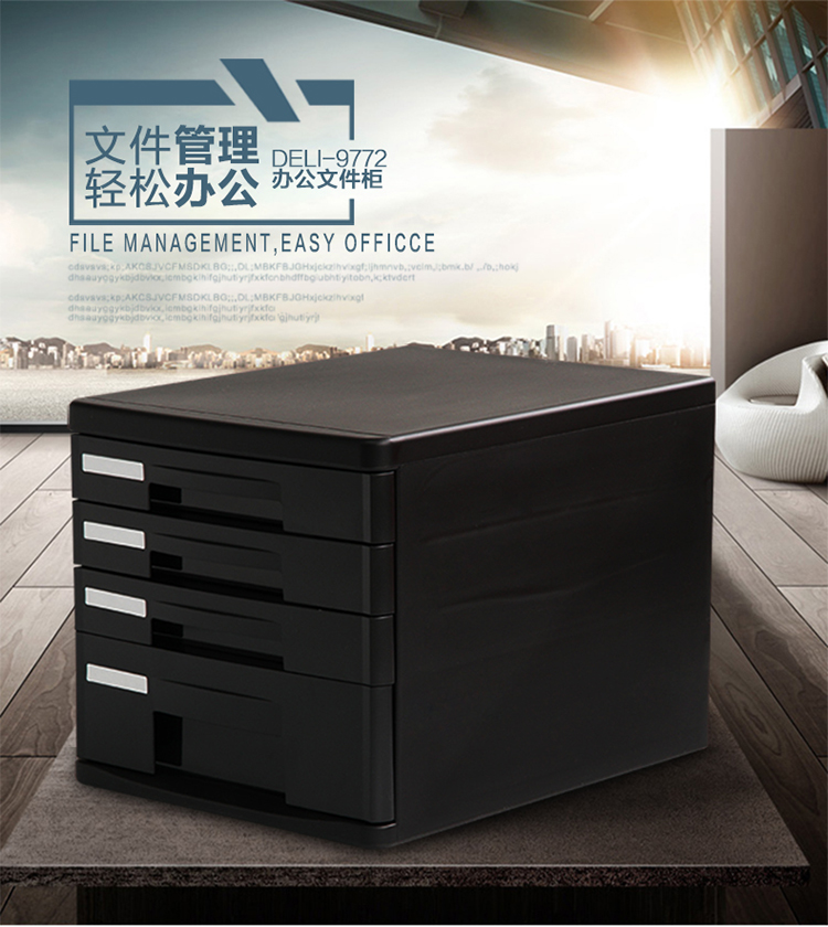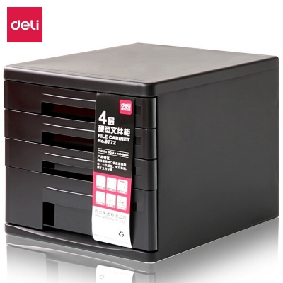 商品名称:得力(deli)4层桌面文件柜 A4拉手资料收纳柜 带索引标签 办公用品 黑色9772