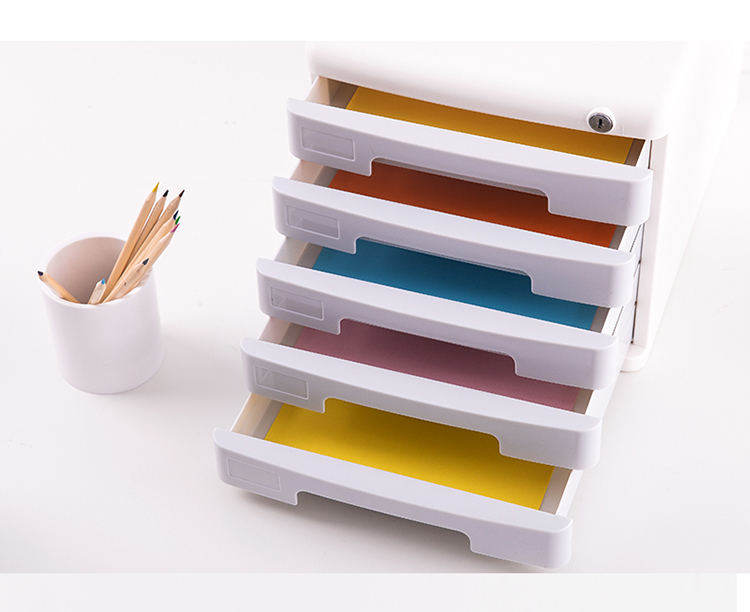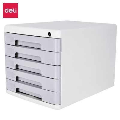 商品名称:得力(deli)5层带锁手拉桌面文件柜 带索引标签抽屉资料收纳柜 办公用品 浅灰色9779