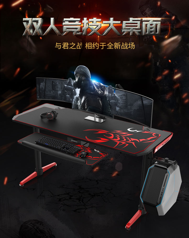赛途(PSEAT )电脑桌电竞桌书桌台式家用书房高度机械可调节1.6米大桌面理线铠甲设计游戏桌子 I60爱好级电竞桌【升降版1.6米】单桌