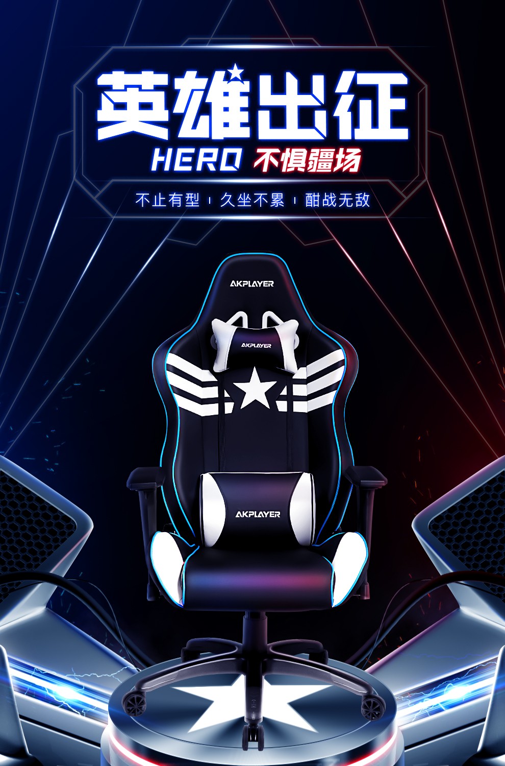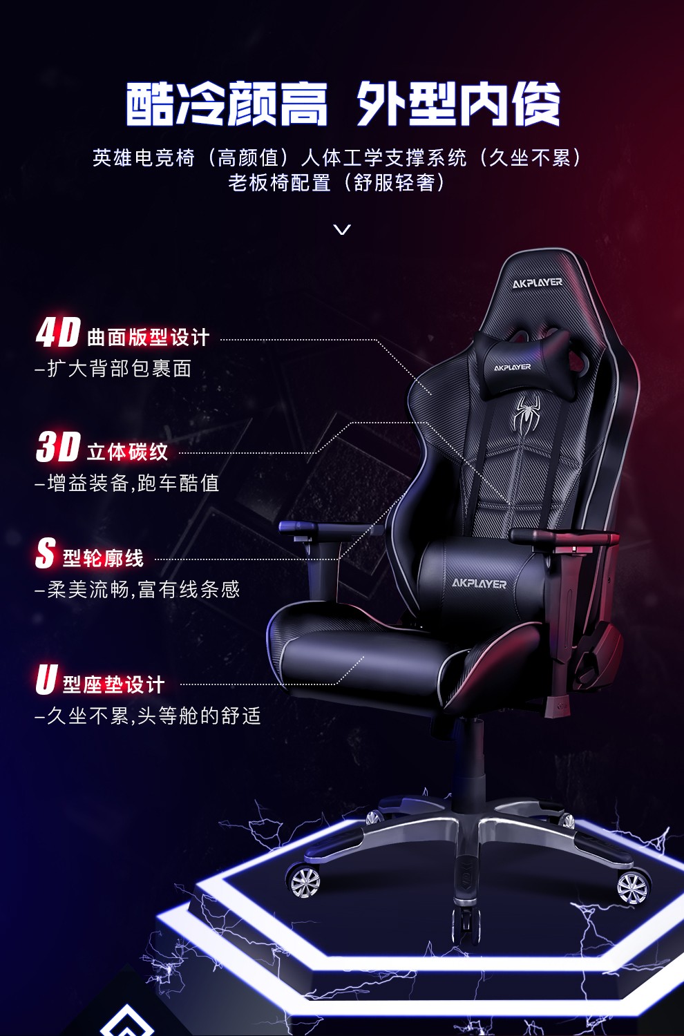 阿卡丁(AKPLAYER)电竞椅 电脑椅 游戏椅 人体工学椅子家用 办公椅可躺靠背 主播 网吧 座椅 美队 烤漆铝合金脚 升降旋转扶手