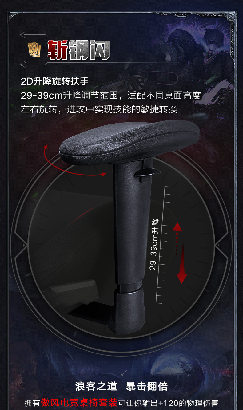 • 扶手类型:可旋转可升降扶手