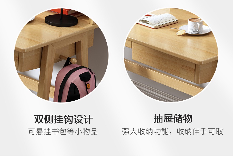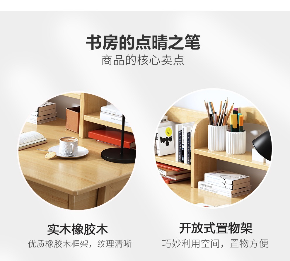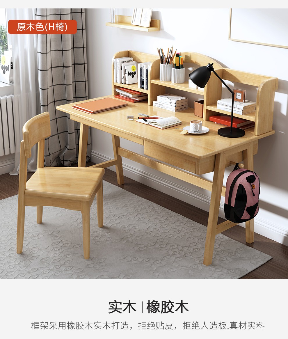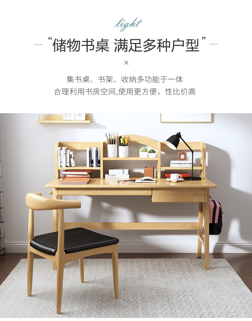 商品名称:风之意 北欧实木书桌 家用小户型办公桌带书架抽屉写字台现代简约笔记本电脑桌SCMY-SZ0013A 胡桃色/牛角椅(书架款) 1.2m桌子+椅子