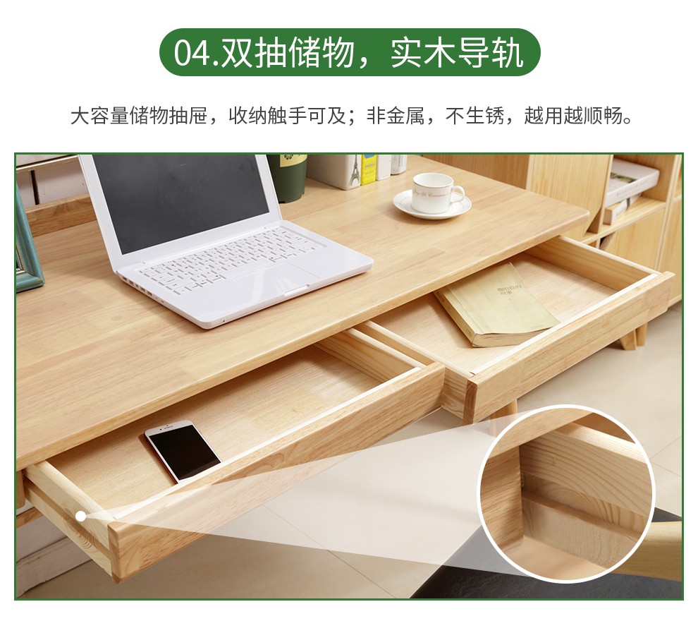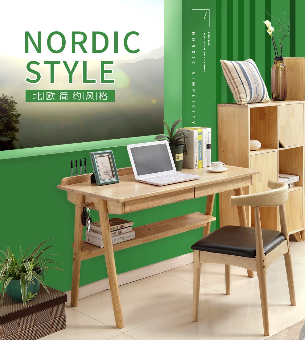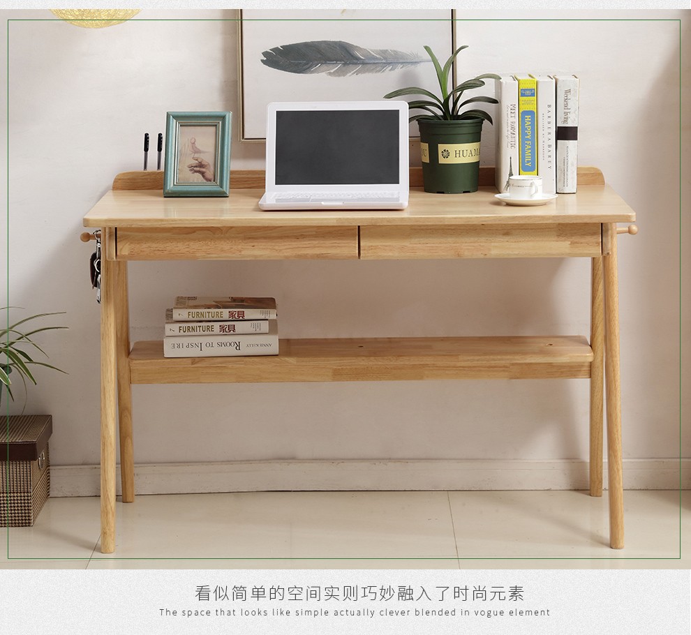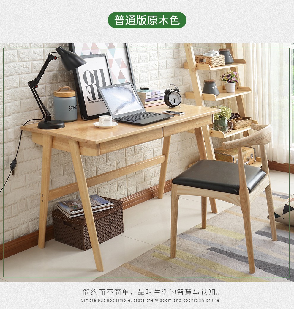 商品名称:风之意 实木书桌儿童书桌北欧日式办公桌小户型写字台家用带抽屉学习桌 原木色(升级版) 1.2m 书桌(双抽屉)