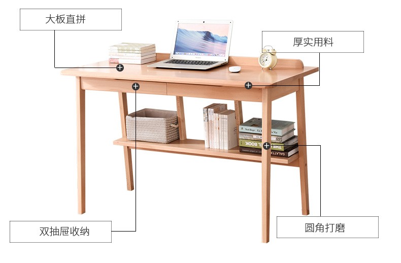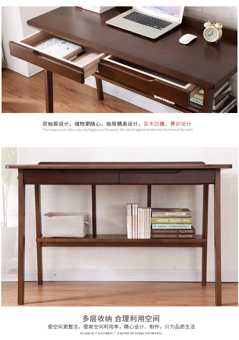 家逸实木书桌电脑桌办公桌书房写字台学生写字桌学习桌书桌书架组合 1米胡桃色+A椅