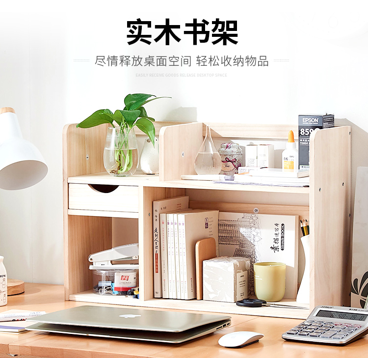 家逸桌面小书架简易实木桌上置物架层架储物架收纳架