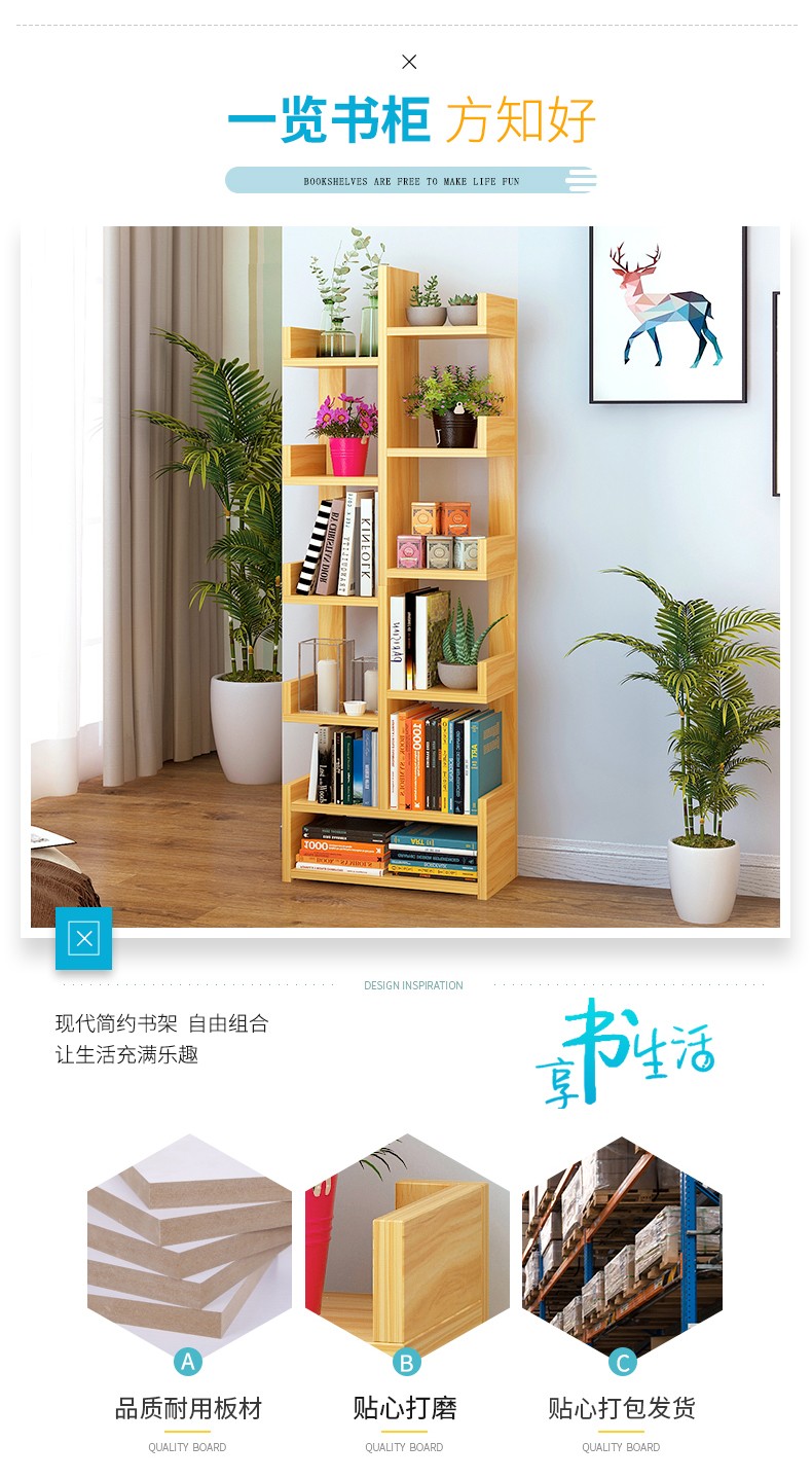 商品名称:亿家达 多层简易书架落地书柜组合 层架置物架 储物架收纳柜子 浅胡桃色