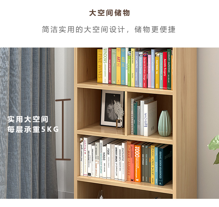 商品名称:木以成居 书柜书架落地 1.58米简易简约实木色储物收纳柜子 松木色六层加大款 LY-4122