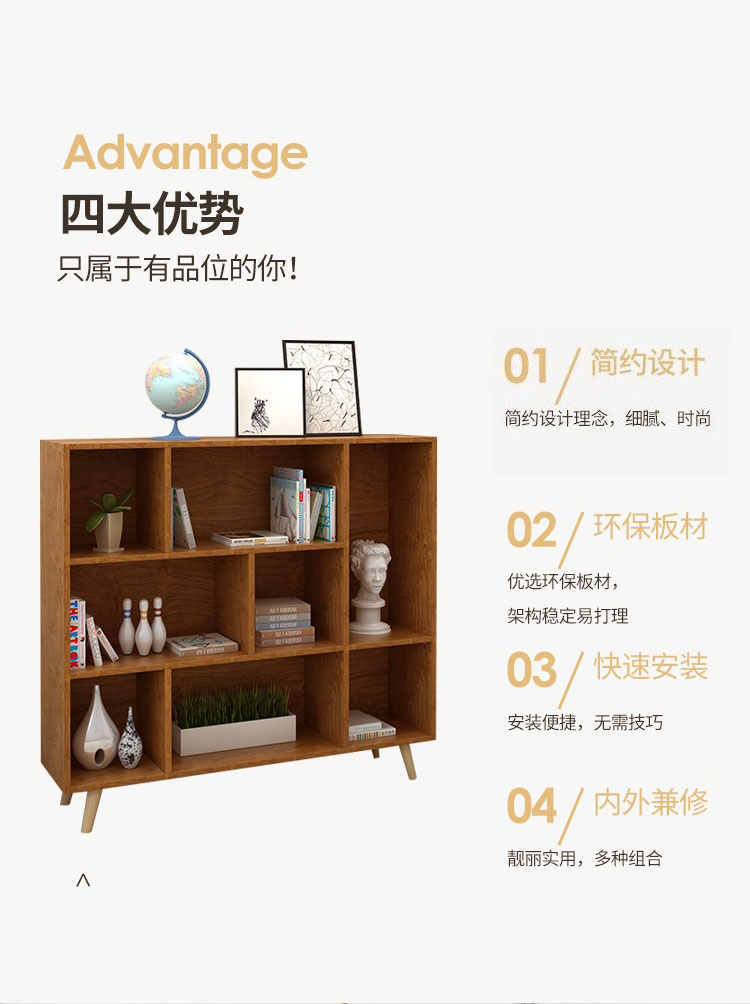 商品名称:木以成居 书柜 简易书架落地 储物柜简约客厅卧室厨房阳台办公玩具收纳柜子 书橱书柜 实木腿樱桃木色LY-4083