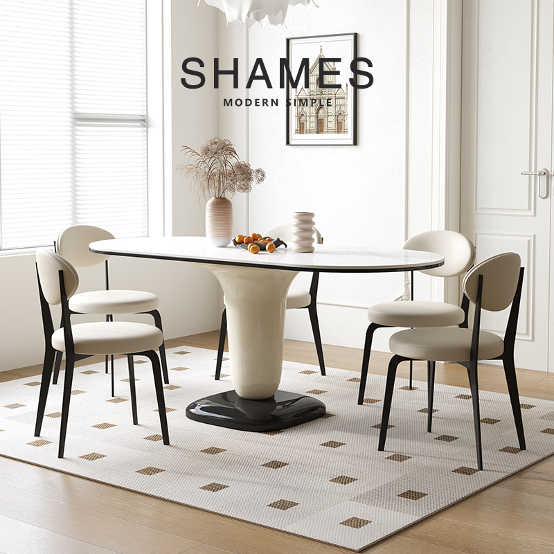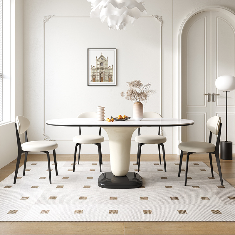 商品名称:法式奶油风餐桌椭圆形网红家用饭桌小户型岩板高级感ins风