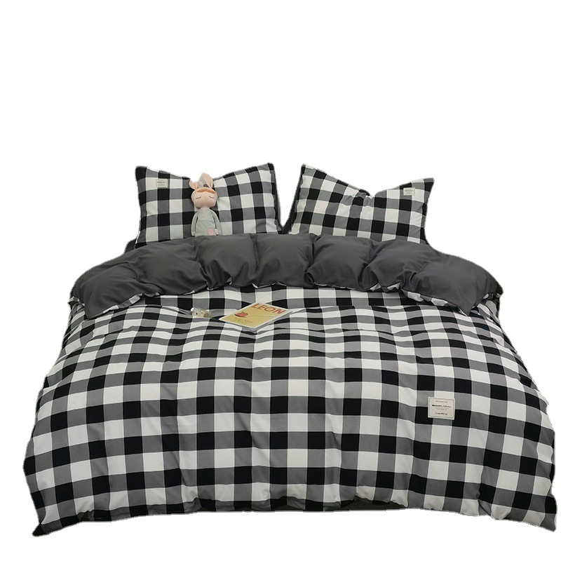 日式无印水洗棉磨毛床上四件套学生宿舍床单被套床笠三件套