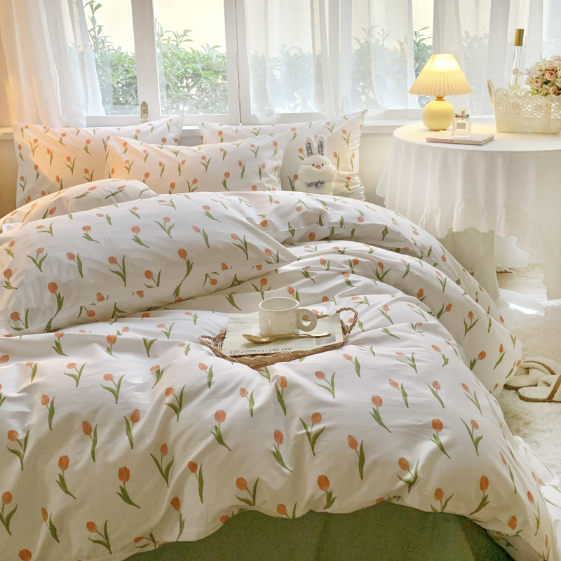 春夏全棉ins风 纯棉四件套40支小清新碎花田园床笠款南通宿舍家纺
