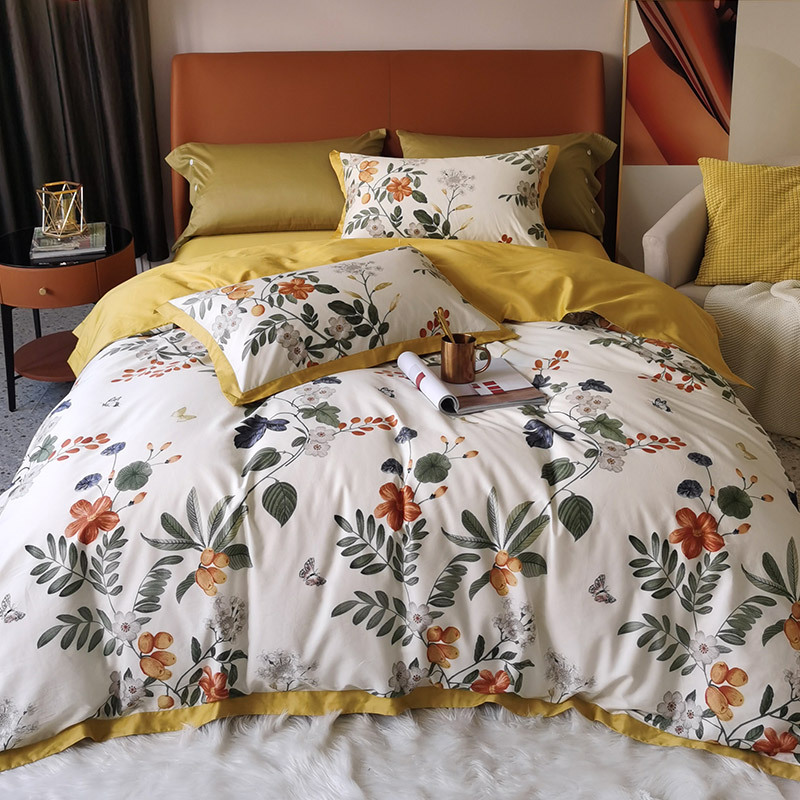 美式60支贡缎长绒棉纯棉床单四件套田园印花家纺全棉被套床上用品