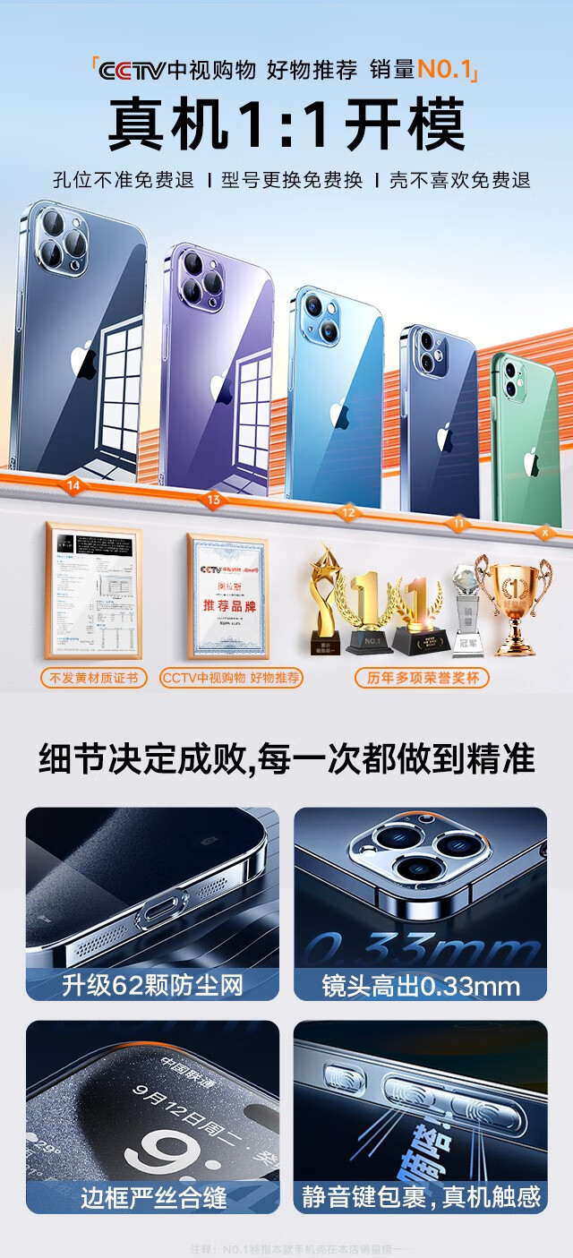 商品名称:【久用不发黄】图拉斯 苹果15promax手机壳iphone15pro保护套超薄全包透明磁吸防摔