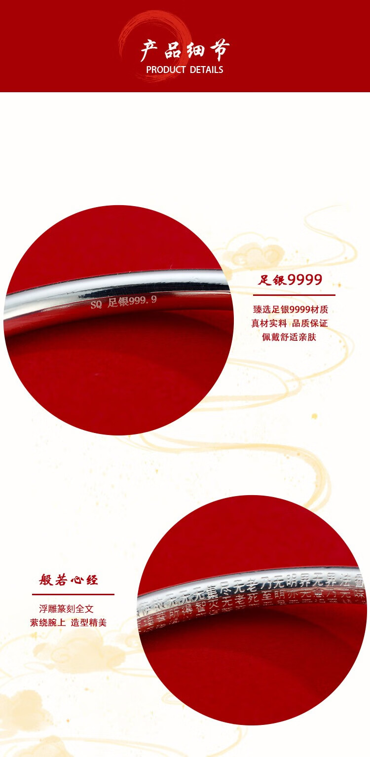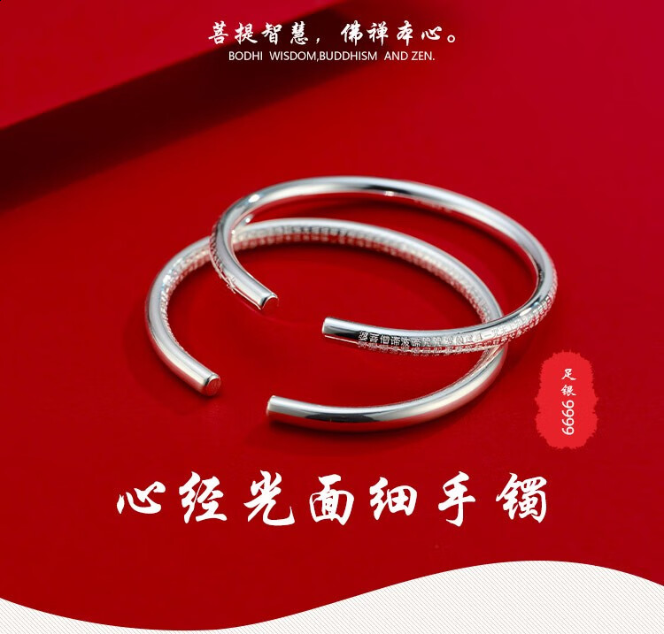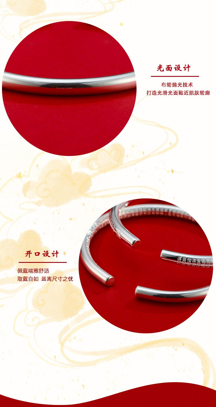 商品名称:S9999银手镯开口刻文年轻时尚款银镯子