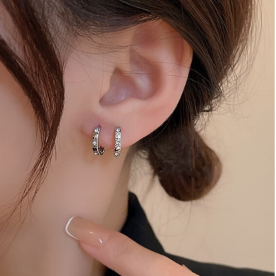 S999足银转运珠耳环女小蛮腰潮流百搭耳钉