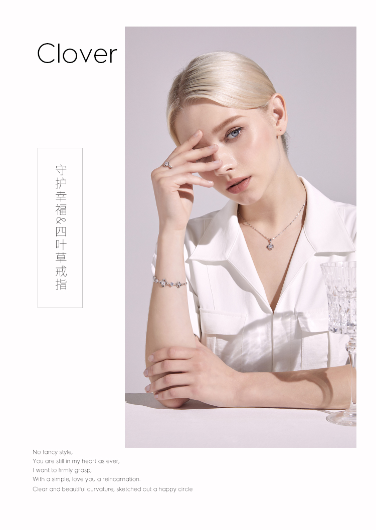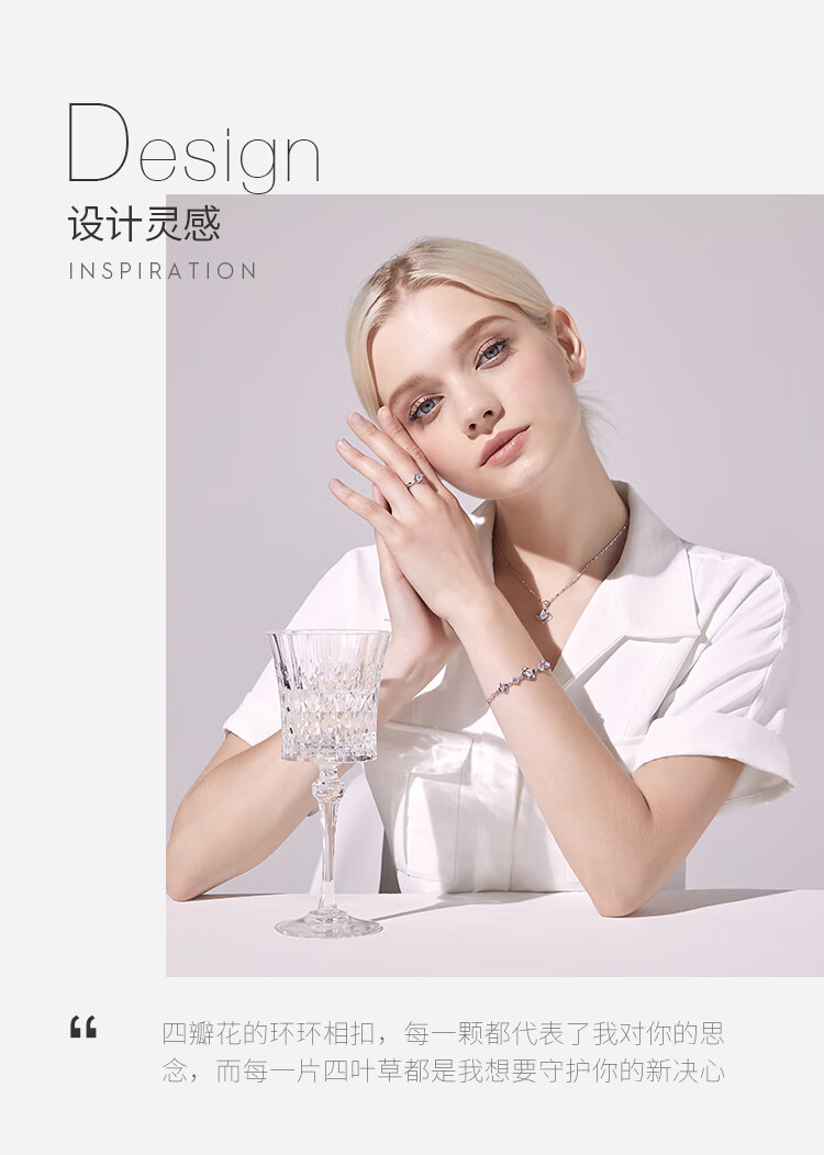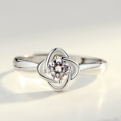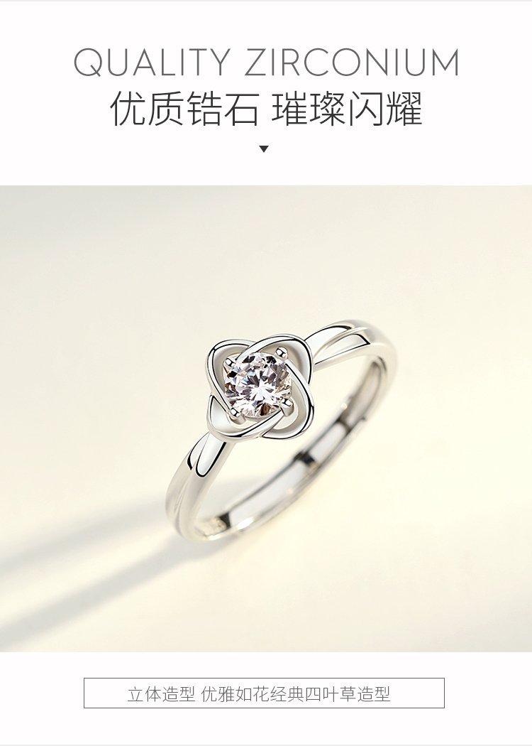 商品名称:情侣戒指四叶草女999足银生日礼物女素圈可调节