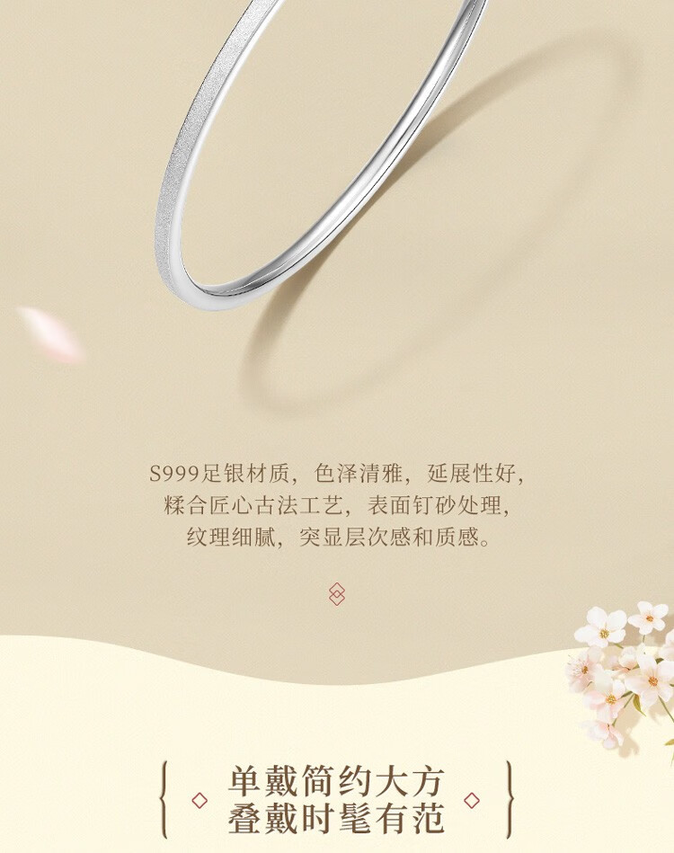 商品名称:S999足银手镯女古法传承实心银饰镯子