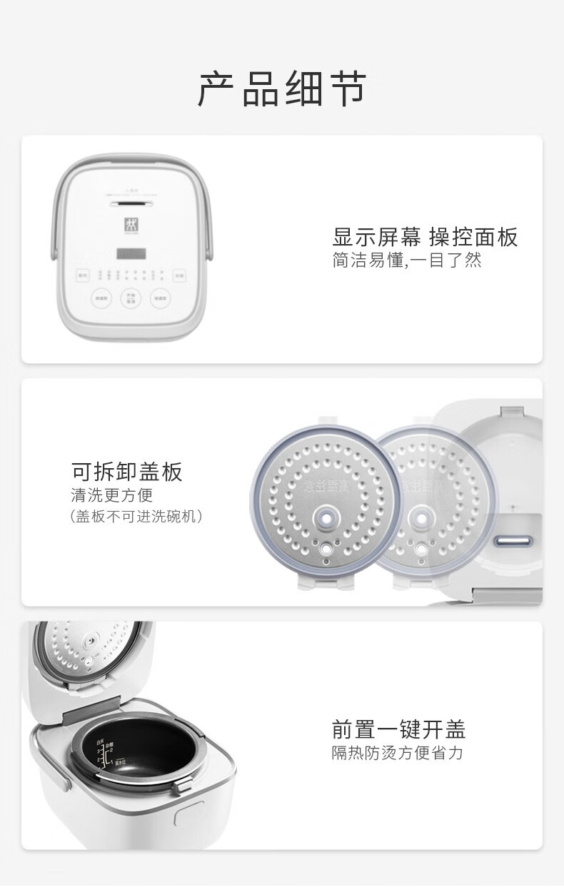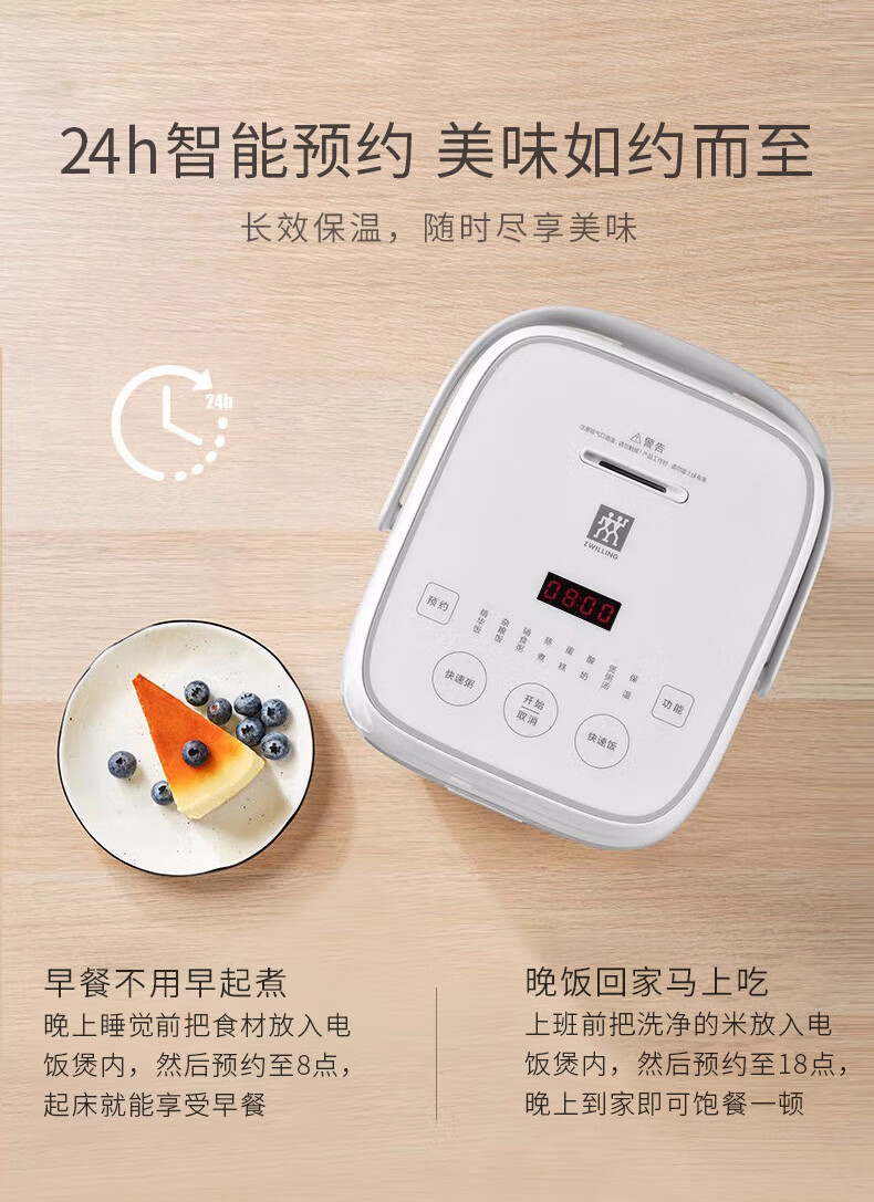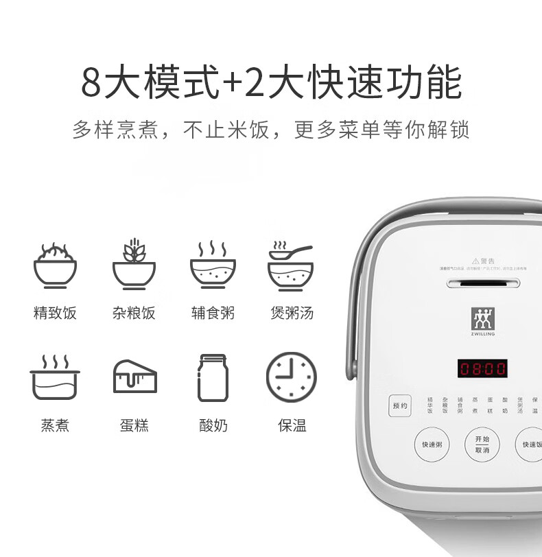 商品名称:双立人(ZWILLING)电饭煲电饭锅迷你多功能智能预约家用小家电煮饭锅2L蒸饭锅2-3人 白色-8大模式